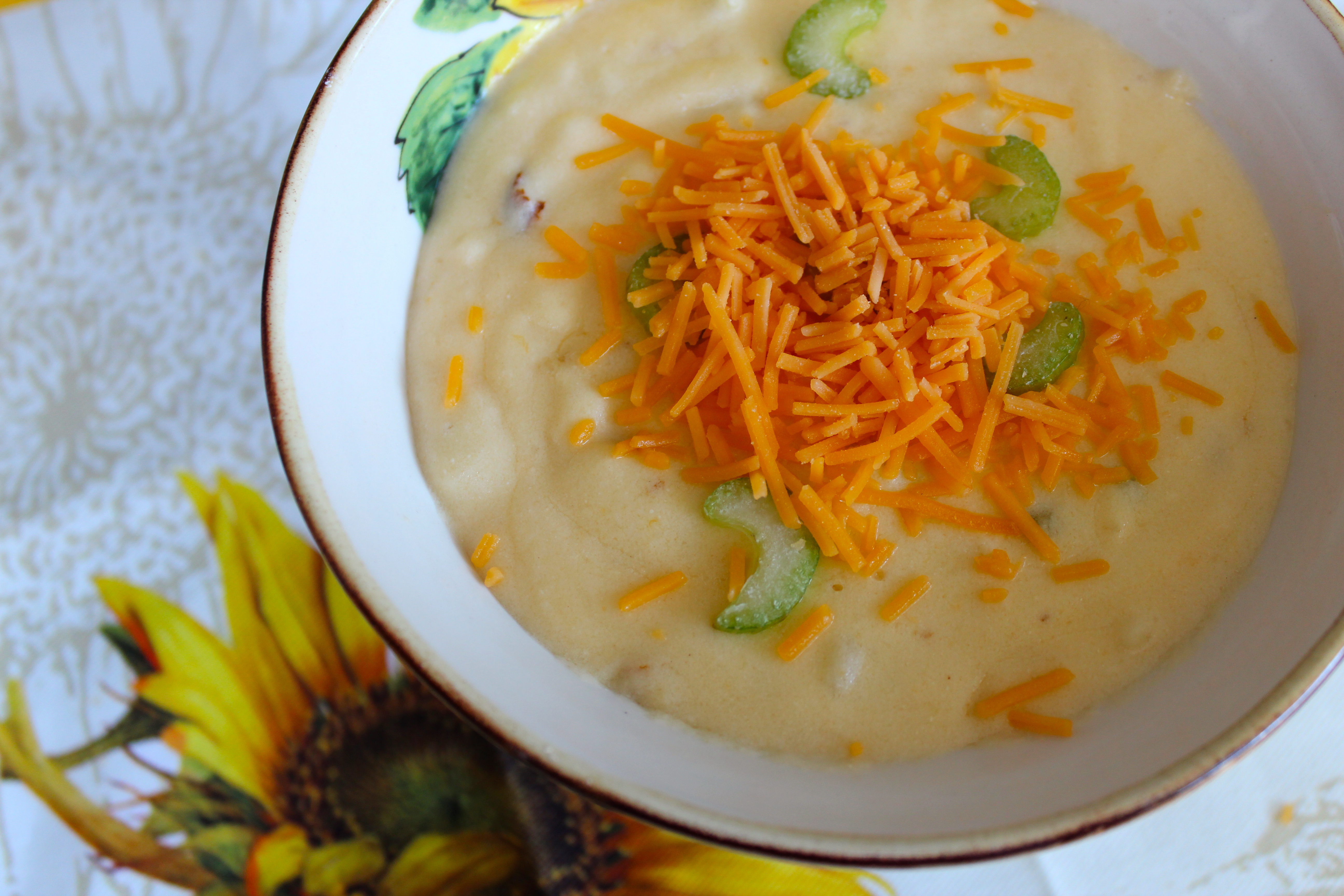Once the cheese has melted, serve and garnish each bowlful with celery (which adds a nice crunch to the overall dish, as well as a bright pop of color).